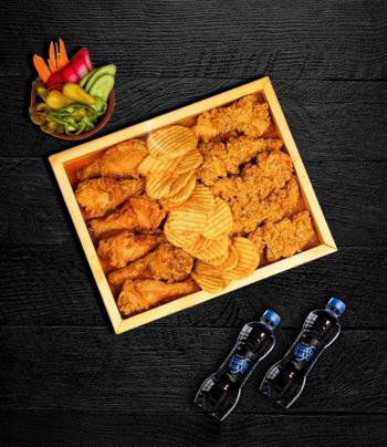 فرخة بروستد 8 قطع + 5 قطع كرسبي + 5 اسكالوب + 4 سوبريم + تتقدم مع بطاطس وتوميه ومخلل